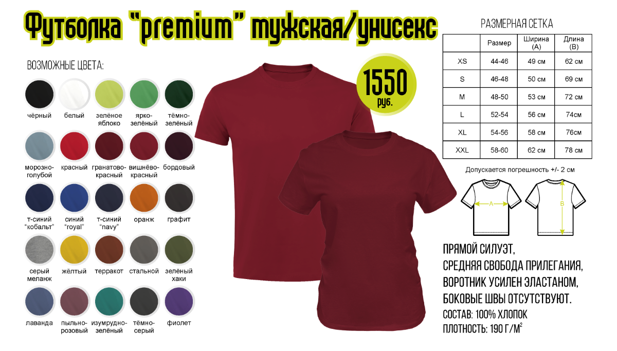 СДЕЛАТЬ ЗАКАЗ *Цены на текстиль указаны без печати. *На оптовые заказы от 10 шт. - скидка *Скидки студентам, молодоженам и в день рождения с оптовым прайсом не суммируются *Оттенки цветов могут отличаться ОСТАВЬТЕ ЗАЯВКУ, МЫ СВЯЖЕМСЯ С ВАМИ! Ваше имя E-mail Контактный телефон Я согласен на обработку персональных данных Отправить