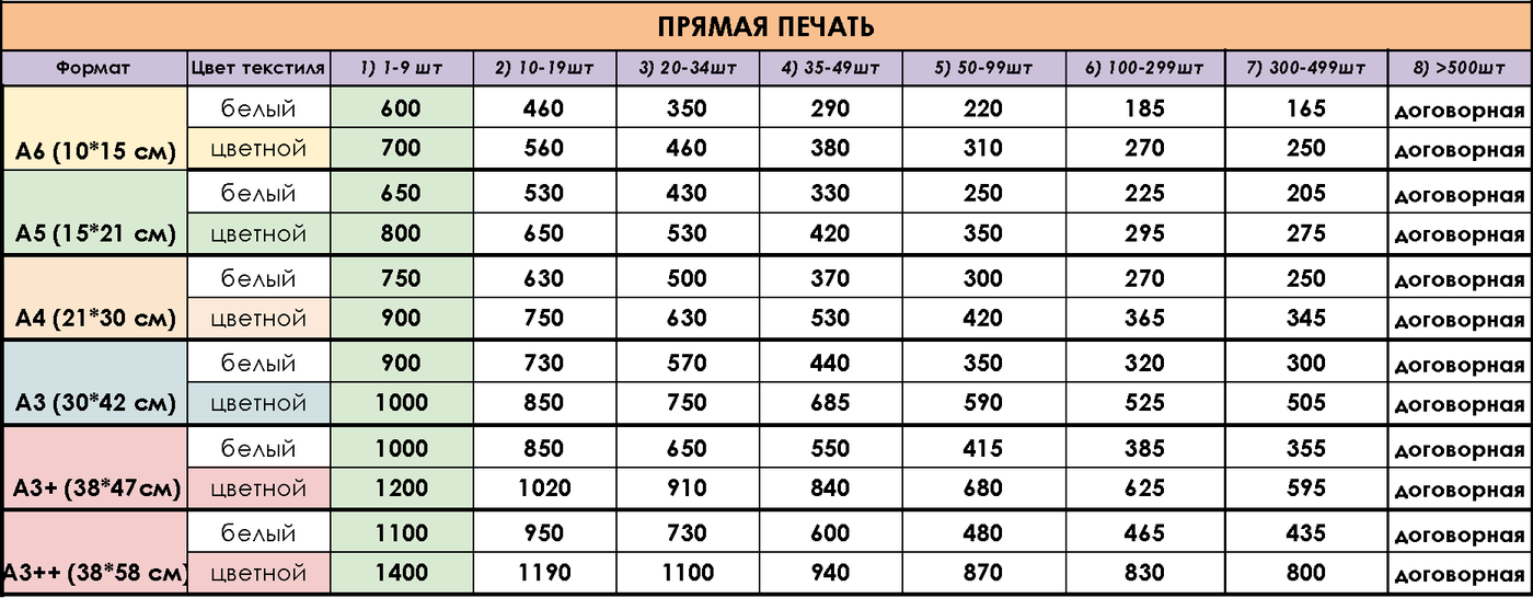 Стоимость прямой печати