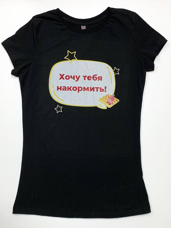 Футболка с надписью «Хочу тебя накормить!» - идеальный выбор для девушек, которые любят радовать близких и не боятся выделяться. Яркий принт, мягкий материал и универсальный фасон делают эту модель отличным дополнением к вашему гардеробу.