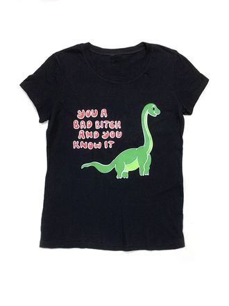 Добавьте уверенности и юмора в свой гардероб с этой стильной женской футболкой "Dino Attitude"! Такой принт идеально подойдёт для девушек, которые не боятся выделяться, ценят самоиронию и любят оригинальные детали в одежде. Футболка отлично сидит по фигуре, приятна к телу и подходит для повседневной носки, вечеринок или в качестве необычного подарка подруге.