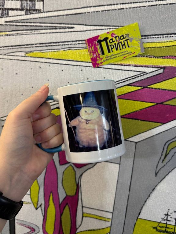 Кружка голубая "Кот колдун"