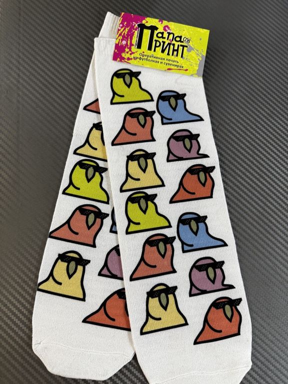 Белые мужские носки с ярким принтом "Parrot Pop": по всей длине расположены стилизованные попугаи в разных цветах - жёлтые, красные, голубые и розовые. Такой дизайн добавляет образу игривости и оригинальности, отлично подойдёт для современных мужчин, которые любят необычные детали и ценят индивидуальный стиль. Носки выполнены из мягкого хлопка с добавлением эластана, хорошо тянутся, не сползают и подходят как для повседневной носки, так и для подарка другу или близкому.