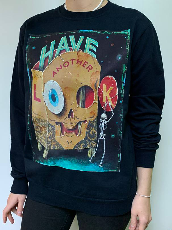 Стильный мужской свитшот без начёса с ярким арт-принтом «Have Another Look». Такой дизайн привлекает внимание, подчёркивает индивидуальность и отлично подойдёт для поклонников необычных вещей и современного искусства. Свитшот выполнен из мягкого хлопкового материала, приятен к телу и подходит для повседневной носки в любое время года. Универсальный чёрный цвет и классический крой легко сочетаются с джинсами, брюками или спортивной одеждой. Размер S идеально подойдёт для стройной фигуры или подростка.
