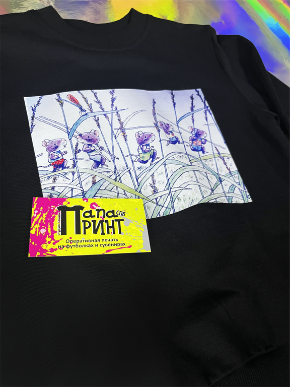 Подарите ребёнку сказку с чёрным свитшотом "Мышиная команда"! Красочная иллюстрация с мышатами и стрекозой на груди обязательно понравится юным мечтателям. Свитшот выполнен из приятного к телу трикотажа, хорошо держит форму и легко стирается. Идеальный выбор для детей 7–8 лет: тепло, удобно и очень стильно.